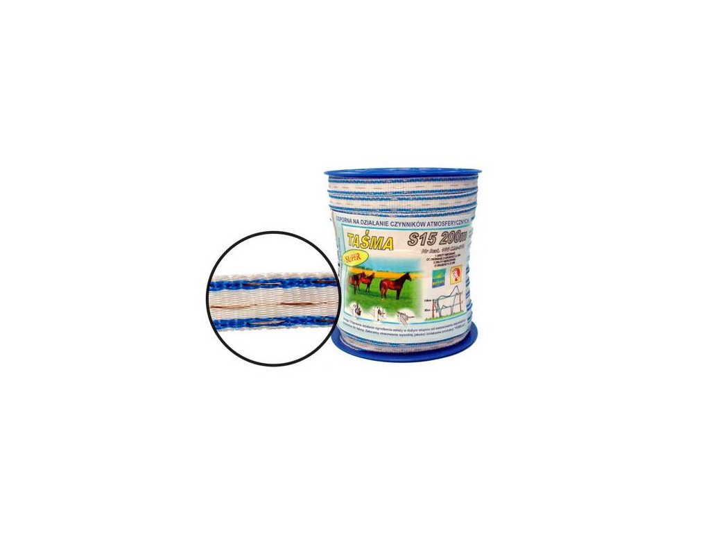 Leitfähiges Band mit erhöhter Leitfähigkeit mit 6 Leitern. Farbe weiß mit blauen Fasern. Zugfestigkeit 100 kg aufgrund der dickeren Fasern des Kunststoffträgers. 200 m Wicklung.