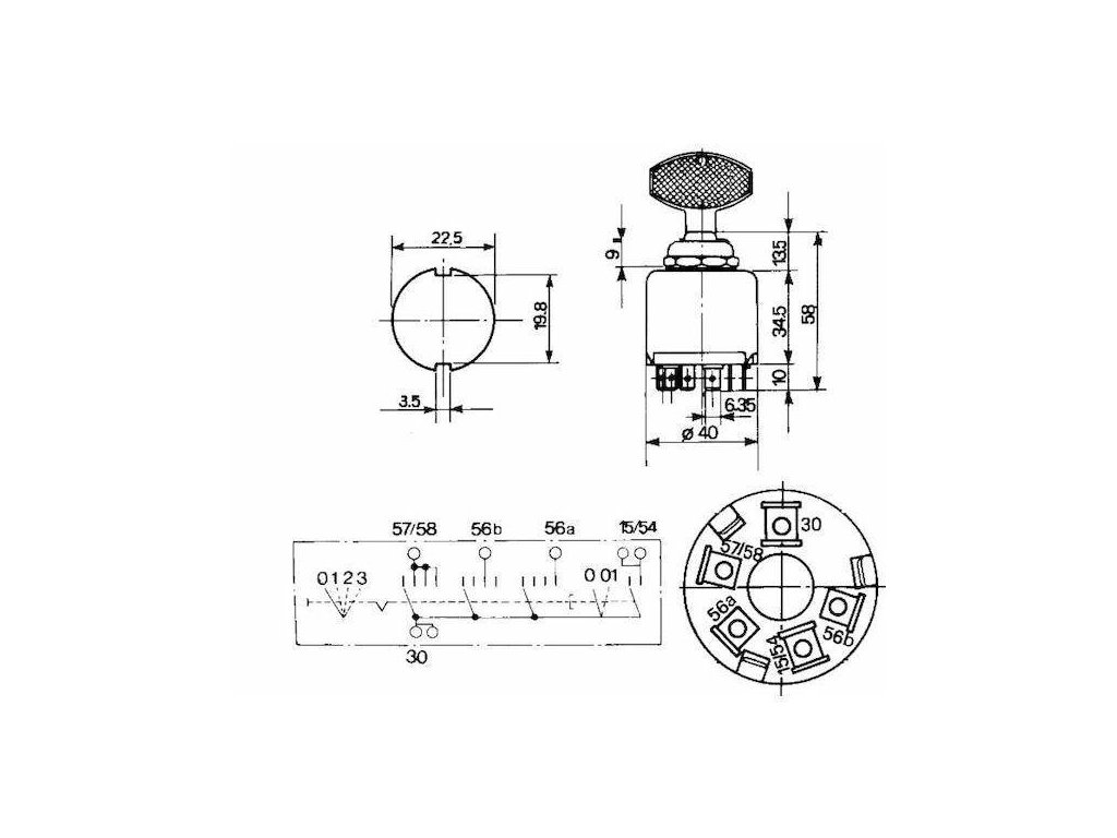 Lichtschalter/Schalter, 4 Positionen, Schlüssel