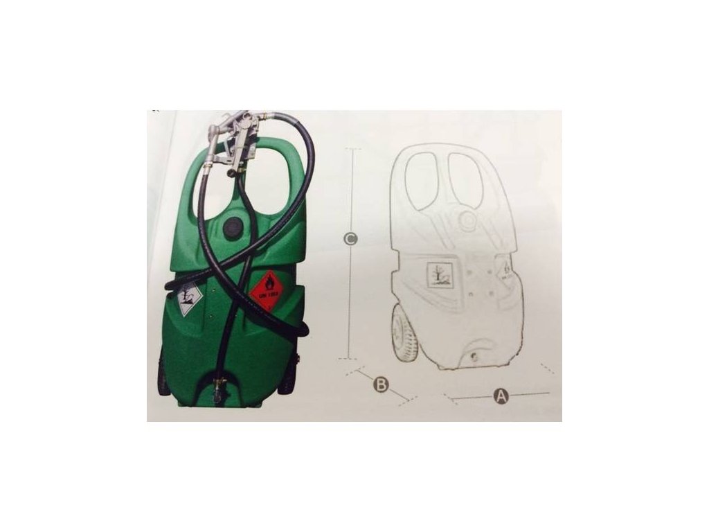 Benzintankwagen 110 l, Tankmaterial Polyethylen, Schlauchlänge 3 m, Handpumpe.