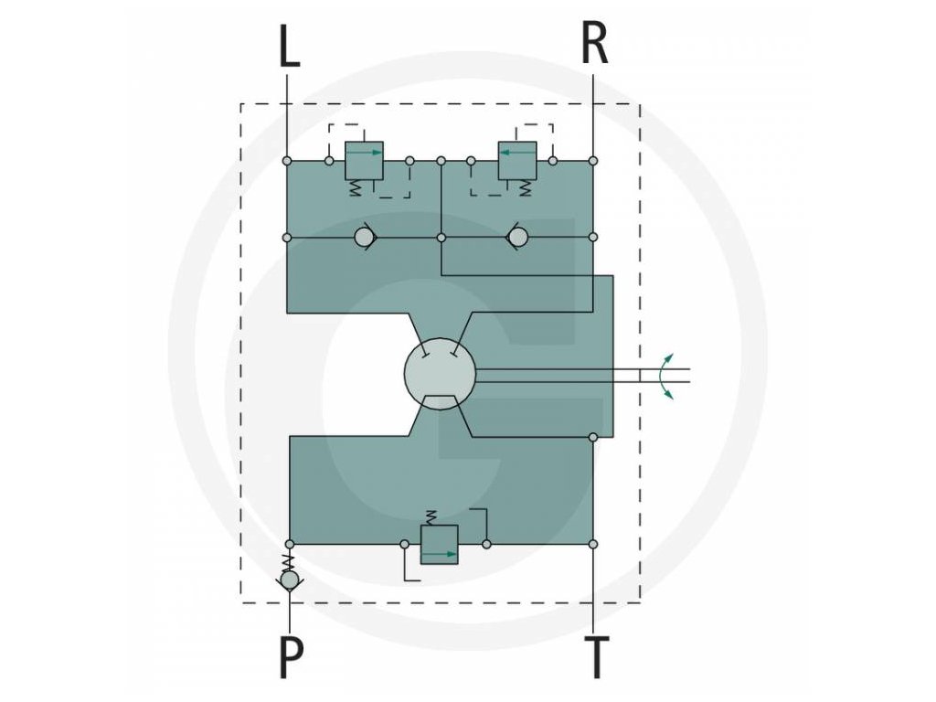 In der Neutralstellung wird eine offene Verbindung zwischen der Pumpe und dem Tank hergestellt.