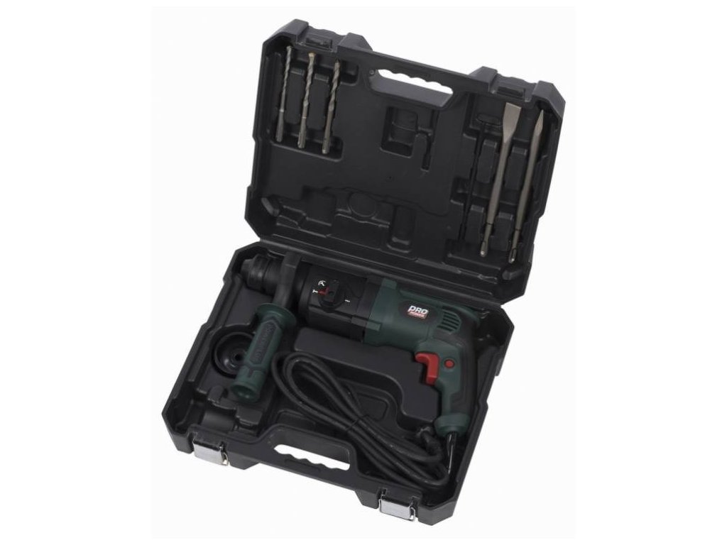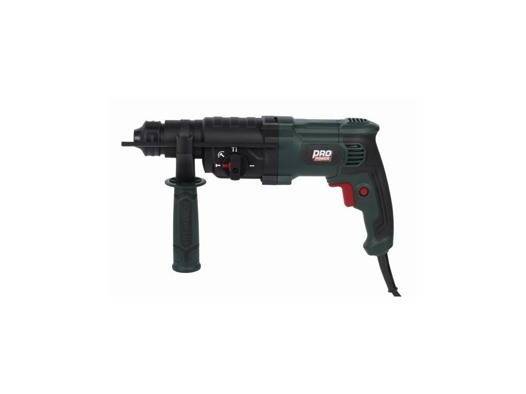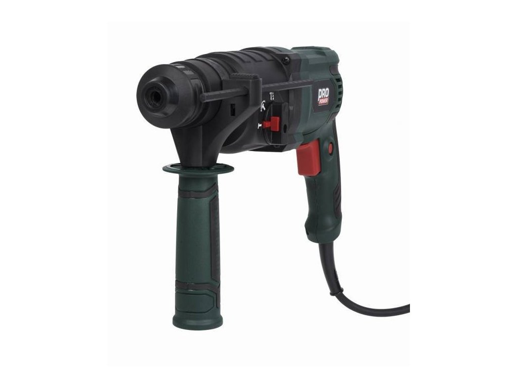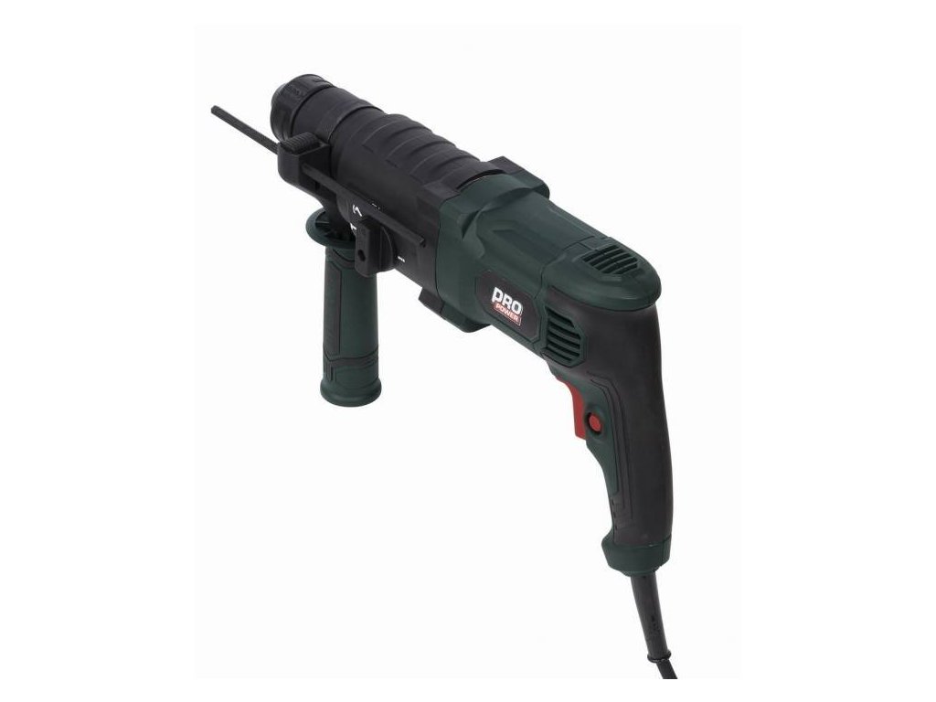 DIE PRO POWER SERIE WURDE ENTWICKELT, UM DIE ANSPRUCHSVOLLEN ANFORDERUNGEN VON PROFIS ZU ERFÜLLEN. DIE HOCHWERTIGEN MASCHINEN LIEFERN HOHE LEISTUNG UND BEWÄLTIGEN AUCH DIE ANSPRUCHSVOLLSTEN AUFGABEN. MIT PRO POWER KÖNNEN SIE SICH AUF QUALITÄT UND ZUVERLÄSSIGKEIT VERLASSEN. Dieser 800-Watt-Bohrhammer ist für alle Bohr-, Schlagbohr-, Meißel- und Meißelarbeiten geeignet. Er schafft bis zu 4.860 Schläge pro Minute mit einer Kraft von 4 J. Sie können mit ihm bis zu 26 mm Beton, 13 mm Stahl und bis zu 40 mm Holz bohren. Der Tiefenanschlag hilft Ihnen, die Bohrtiefe genau einzustellen. Die Drehzahl kann von 0 bis 1.050 U/min eingestellt werden. Ein Arretierknopf für Dauerbetrieb ermöglicht kontinuierliches Arbeiten. Das SDS plus-Aufnahmesystem ermöglicht einen schnellen Bohrer- oder Meißelwechsel ohne zusätzliches Werkzeug. Der Softgrip-Griff sorgt für maximalen Komfort. Der Bohrhammer ist mit einem abnehmbaren Zusatzhandgriff ausgestattet, der auf beiden Seiten des Hammers angebracht werden kann. Der POWP3010 wird mit einer Staubwanne, drei Bohrern, einem Flach- und einem Spitzmeißel geliefert.