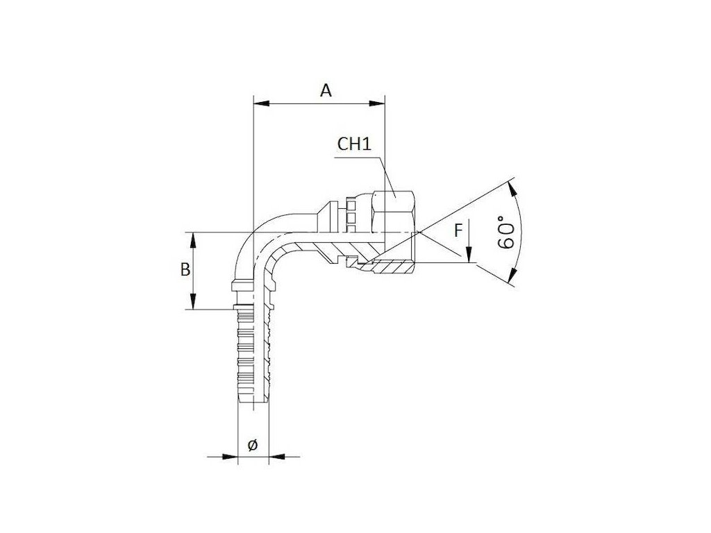 Pressnippel für Hydraulikschläuche mit Innengewinde, 90 Grad und Dichtkopf 60 Grad 5/8 - 5/8"