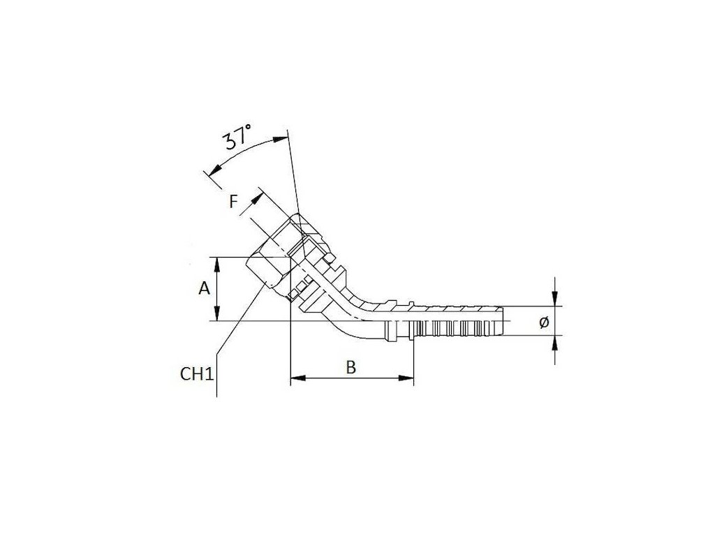 Pressnippel 45 Grad gebogen für die Herstellung von Hydraulikschläuchen mit 7/8" Innengewinde, 74 Grad JIC Dichtung, für 5/8" ID Rohr