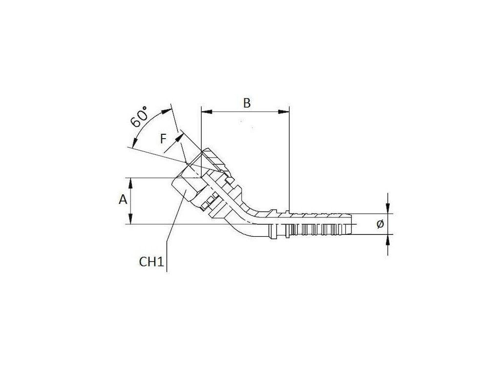 Pressnippel mit Innengewinde, 45 Grad und Dichtkopf 60 Grad 1/4" - 3/8"