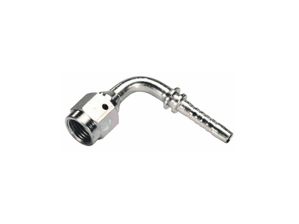 Pressnippel mit Innengewinde JIC 74, 5/16", 9/16", 90 Grad.