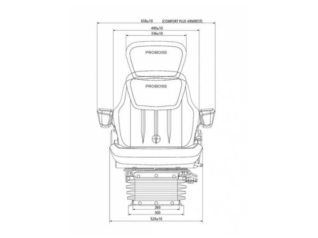 Das neue PROBOSS Sortiment umfasst drei luftgefederte Sitze, die selbst in unseren Basismodellen gehobenen Komfort bieten. Mit einer ergonomisch gestalteten Sitzfläche und Rückenlehne sowie klimatisierten Polsterkanälen sorgen sie für entspanntes Sitzen auch während langer Einsätze. Die integrierte Bandscheibenstütze unterstützt eine gesunde Haltung, während das elegante Design mit gut durchdachten Details und hochwertigen Stoffbezügen jede Kabine optisch aufwertet.
