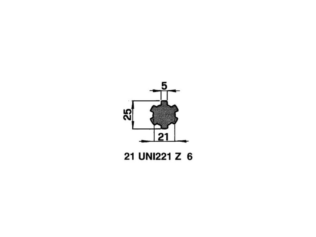 | Außenprofil: | glatt 38 mm, 21 x 25 x 5 mm 21 UNI 221 Z6 (6 Zähne , 25 mm) |