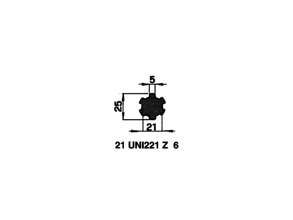 | Außenprofil: | 21x25x5 mm - 6 Zähne |
