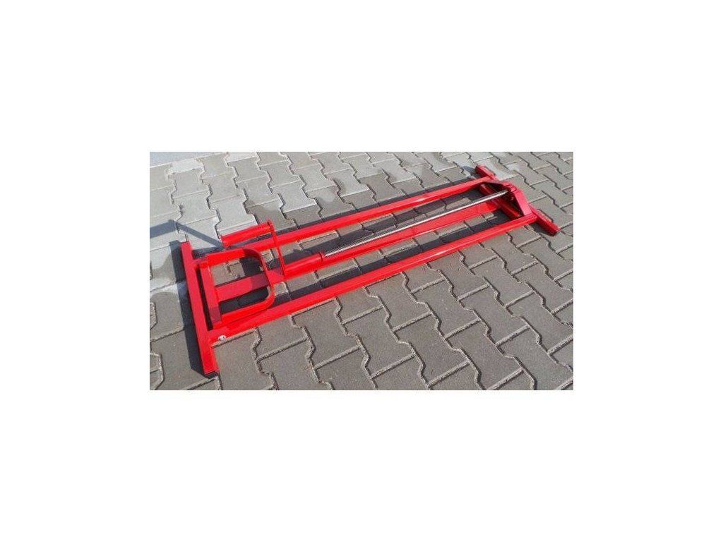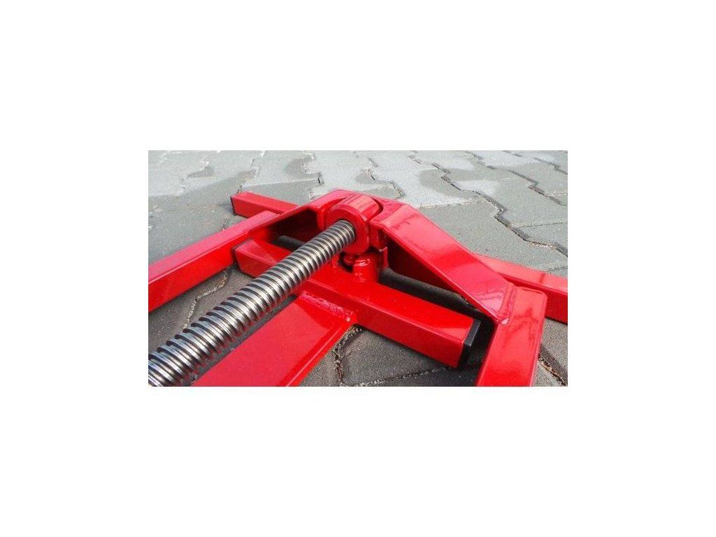 Um den Traktor anzuheben, fahren Sie die Hinterräder des Fahrzeugs auf den speziell dafür vorgesehenen Rahmen des Traktorhebers. Durch das Drehen der Gewindestange verlagern Sie den Traktor in eine seitliche Position mit einem Neigungswinkel von etwa 40°. Dabei wird das untere Rad des Traktors stets sicher mit einem robusten Sicherheitsgurt am Wagenheber fixiert, um maximale Stabilität zu gewährleisten. Der Traktorheber verfügt über eine Hublastkapazität von bis zu 400 Kilogramm, wodurch er auch für größere Modelle geeignet ist.