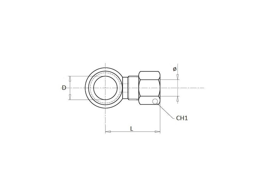 Ringauge-Aufnahme, Rinauge 1/2", für Schneidering 15 mm, Länge 44,5 mm.