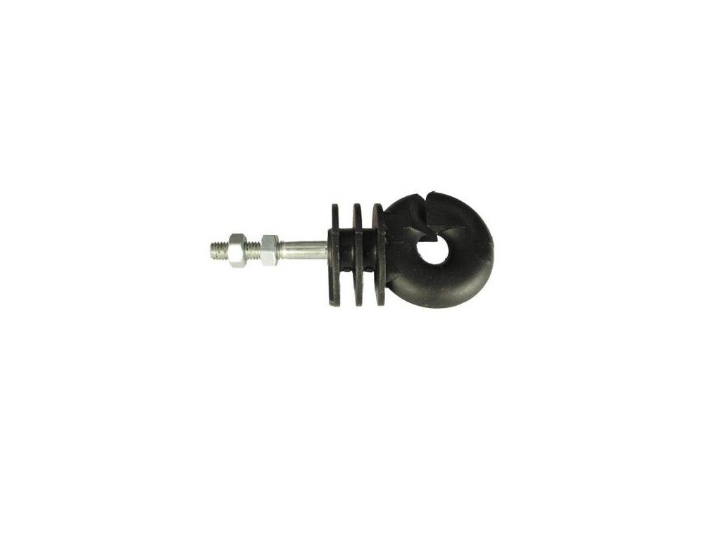 mit metrischem Gewinde M6, inklusive zwei Befestigungsmuttern. Vielseitig einsetzbarer Isolator für Drähte und Kabel bis zu einem Durchmesser von 5 mm sowie für Band bis zu einer Breite von 10 mm. Der freie Schaftabschnitt misst 38 mm in der Länge, während die Maße des Kunststoffteils 53 x 46 x 29 mm betragen. Gewicht: 25 g. Erhältlich in Verpackungseinheiten von 1 Stück oder 25 Stück.