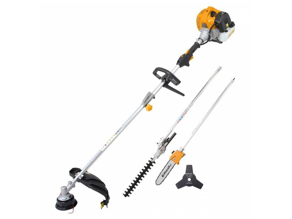 RPMT 520 - 4-in-1-Multifunktions-Benzin-Freischneider Universal-Helfer, der als Strimmer, Freischneider, Heckenschere und Kettensäge eingesetzt werden kann Top-Motor, hochwertiger Filter, geringe Emissionen, maximale Leistung ca,0 PS einfacher Motorstart komfortabler Handgriff mit mehreren Griffmöglichkeiten für das Arbeiten in verschiedenen Positionen und mit unterschiedlichen Anbaugeräten werkzeuglose Umrüstung ausreichende Leistung bei geringem Gewicht für Überkopfsäge oder Heckenschere automatisches Abwickeln und Einstellen der Fadenlänge durch leichtes Antippen des Bodens geteilter Schaft für einfachen Transport komfortabler Tragegurt serienmäßig weiteres Standardzubehör: Astsäge: Schnittlänge: 255 mm Schiene: 305 mm Plottschnitt: Schienenlänge: 40 cm Schnittbreite: 24 mm Schwenkbarer Kopf: ja, 180°CBedingungen der erweiterten Garantie finden Sie hier.Zusätzliche Parameter