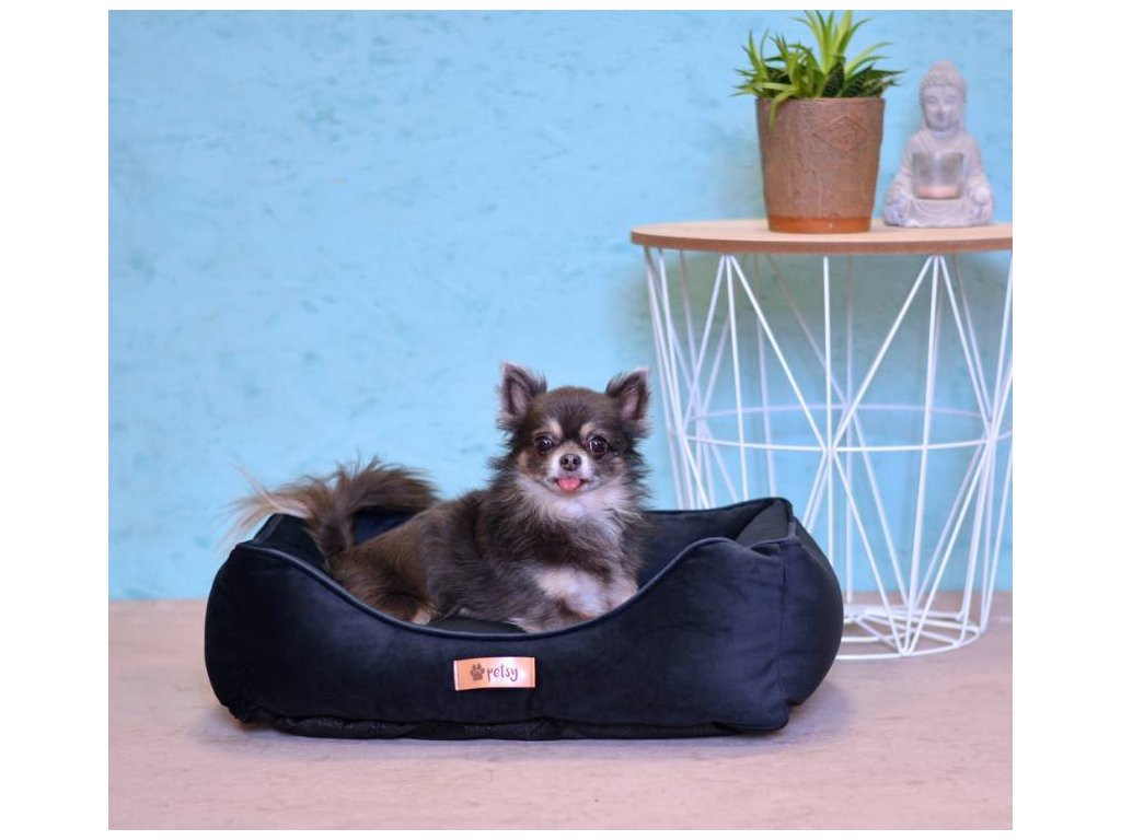 Luxuriöses Hundebett mit samtiger Optik.