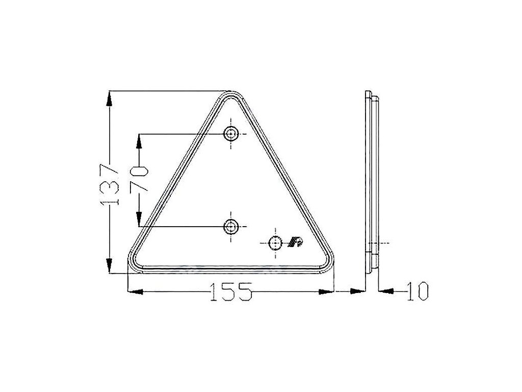 Rückstrahler-Dreieck 155x137x10mm zum Anschrauben mit 2 Löchern rot