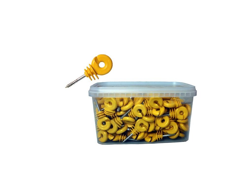 Durchgehender Standard-Rundisolator mit Schraube Ø 5mm. Universeller Isolator für Holzpfähle für Drähte, leitende Kabel bis zu Ø 5mm und leitendes Band von 10mm Breite. Die Länge des freien Teils der Schraube beträgt 38mm, die Abmessungen des Kunststoffteils 53x46x29mm. Gewicht 22g.