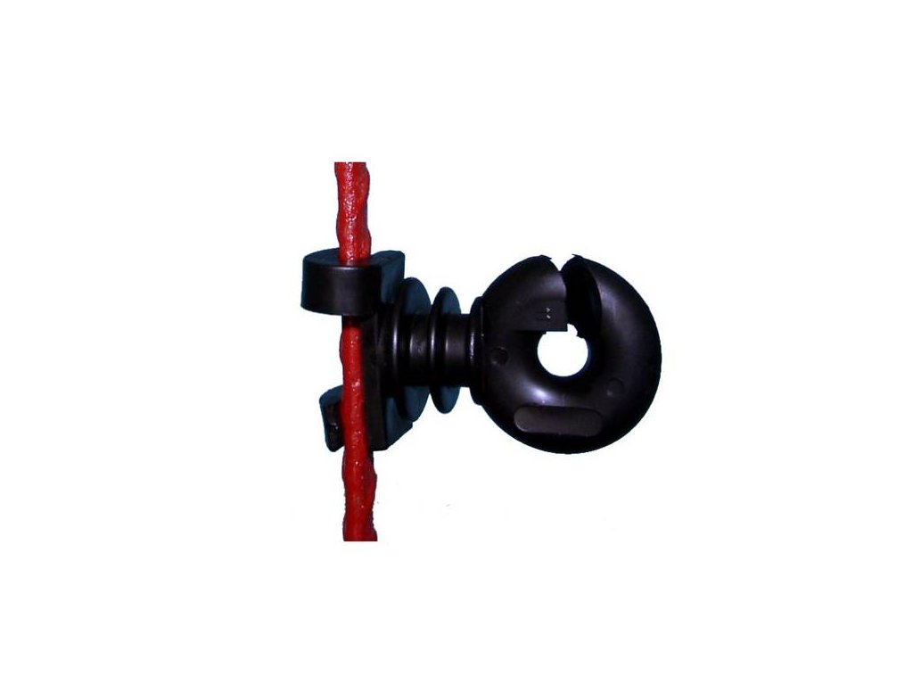 Durchgehender Rundisolator zur Montage auf Ovalstab. Universeller mobiler Zaunisolator für Drähte, leitende Kabel bis zu Ø 5mm und leitendes Band von 10mm Breite. Die gegenüberliegenden Griffe ermöglichen eine schnelle und einfache Montage am Ovalprofilständer. Abmessungen 73x38x30mm. Gewicht 19g. Packung mit 1 Stück/25 Stck.
