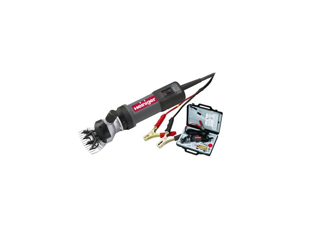Leistungsstarke HEINIGER Elektro-Handschermaschine für die Schafschur zum Anschluss an eine 12V-Batterie. Bei Anschluss an eine 12V-Autobatterie kann 4-5 Stunden geschoren werden. Der Schafscherer hat 5 m lange, robuste Anschlusskabel mit Klemmen. Die eingesetzte Technologie gewährleistet hervorragende Betriebseigenschaften, eine längere Lebensdauer und weniger Wartungsaufwand. Der Kopf ist mit einem patentierten schwimmenden Gabelsystem ausgestattet, das einen gleichmäßigen Druck zwischen Messer und Kamm gewährleistet.