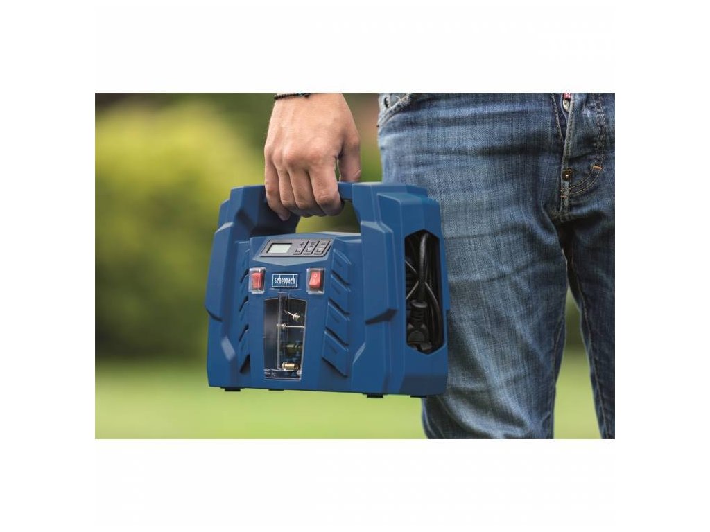 Der Scheppach AIR FORCE 5-Kompressor ist ein kleiner, aber nützlicher Helfer, der sowohl über das normale 230-V-Netz als auch über eine normale 12-V-Steckdose im Auto betrieben werden kann. Er ist nicht nur ein praktischer, kompakter und leichter Kompressor in Ihrer Werkstatt oder Garage, sondern kann auch unterwegs in Ihrem Auto oder Wohnwagen eingesetzt werden. Die Bedienung ist sehr einfach. Auf der digitalen Anzeige können Sie den aktuellen Druckwert ablesen. Dieser kann auch zwischen 0,1 und 8 bar voreingestellt werden und der Kompressor schaltet sich bei Erreichen des eingestellten Drucks automatisch ab. Dank einer großen Anzahl verschiedener Düsen und einem Maximaldruck von bis zu 8 bar kann er das Aufblasen von Motorradreifen, Fahrrädern, Autos, ATVs, Bällen, Matratzen, Schlauchbooten, Flößen usw. übernehmen. Das gesamte Zubehör, einschließlich zweier elektrischer Kabel, eines 0,6 m langen Druckschlauchs und vier verschiedener Düsen, ist geschickt im Inneren des Kompressors versteckt, so dass Sie nichts verlieren können. Dank des praktischen Griffs lässt er sich leicht transportieren. Der Kompressor ist mit einem modernen Motor mit ölfreier Technologie ausgestattet. Das bedeutet, dass kein Öl nachgefüllt oder gewechselt werden muss und der Kompressor immer einsatzbereit ist. Mit seinen Abmessungen und einem Gewicht von nur 1,9 kg ist er außerdem ideal für Camping, Zelten und andere Outdoor-Aktivitäten. 230 V Kabellänge: 1,8 m 12 V Kabellänge: 4 m Druckschlauchlänge: 0,6 m Einstellung des gewünschten Drucks: JA Die Bedingungen für die erweiterte Garantie finden Sie hier.