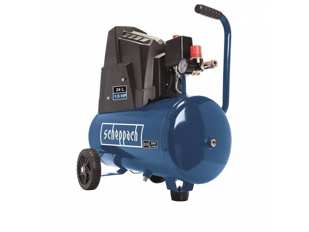 HC 30 OX - 24 l ölfreier KompressorDer Scheppach HC 30 OX ist der ideale Helfer für jeden Haushalt. Er ist denkbar einfach zu warten. Zum einen verfügt er über eine moderne Pumpe mit ölfreier Technik, so dass Sie sich nie um den richtigen Ölstand kümmern müssen, zum anderen ist er mit modernster Induktionsmotortechnik (kohlefrei) ausgestattet. Ein solcher Motor ist ebenfalls praktisch wartungsfrei und hat dank weniger beweglicher Teile und viel weniger Reibungsflächen eine um ein Vielfaches längere Lebensdauer als ein herkömmlicher Kommutatormotor. Außerdem ist er deutlich leiser. Die Airbox dient als Druckluftspeicher und der Motor schaltet sich erst ein, wenn der Luftdruck unter den erforderlichen Wert fällt. Dank der Luftkammer können Sie mit dem Kompressor auch anspruchsvollere Arbeiten als das herkömmliche Blasen oder Pusten durchführen. Sie können einen Tacker, eine Waschpistole oder auch weniger anspruchsvolle Sprüharbeiten mit Farbe oder anderen Druckluftwerkzeugen anbringen. Beim Aufpumpen von Reifen werden Sie die einfache Einstellung des Druckniveaus zu schätzen wissen, das Sie mit dem eingebauten Manometer leicht überprüfen können. Dank der ölfreien Technologie eignet er sich auch perfekt für die Druckhaltung in Bierfässern. Der zusätzliche Handgriff und die Rollen erleichtern die Handhabung des Geräts, für erweiterte Garantiebedingungen klicken Sie hier.Zusätzliche Parameter