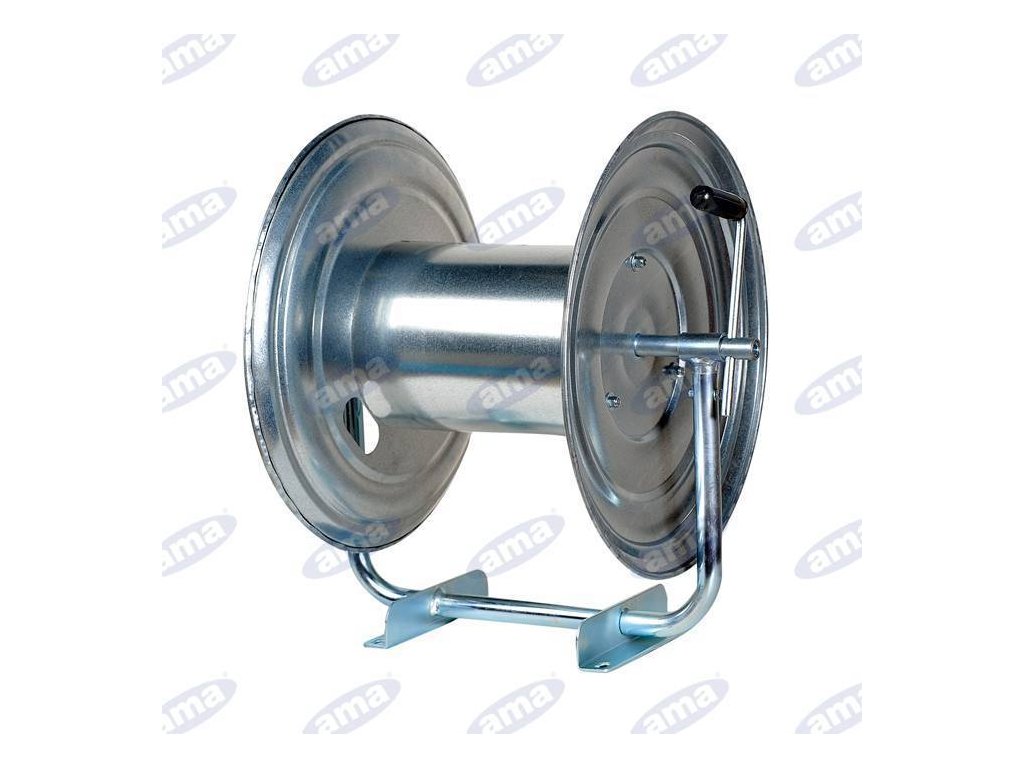 Schlauchaufroller aus verzinktem Metall ohne Kunststoffteile.