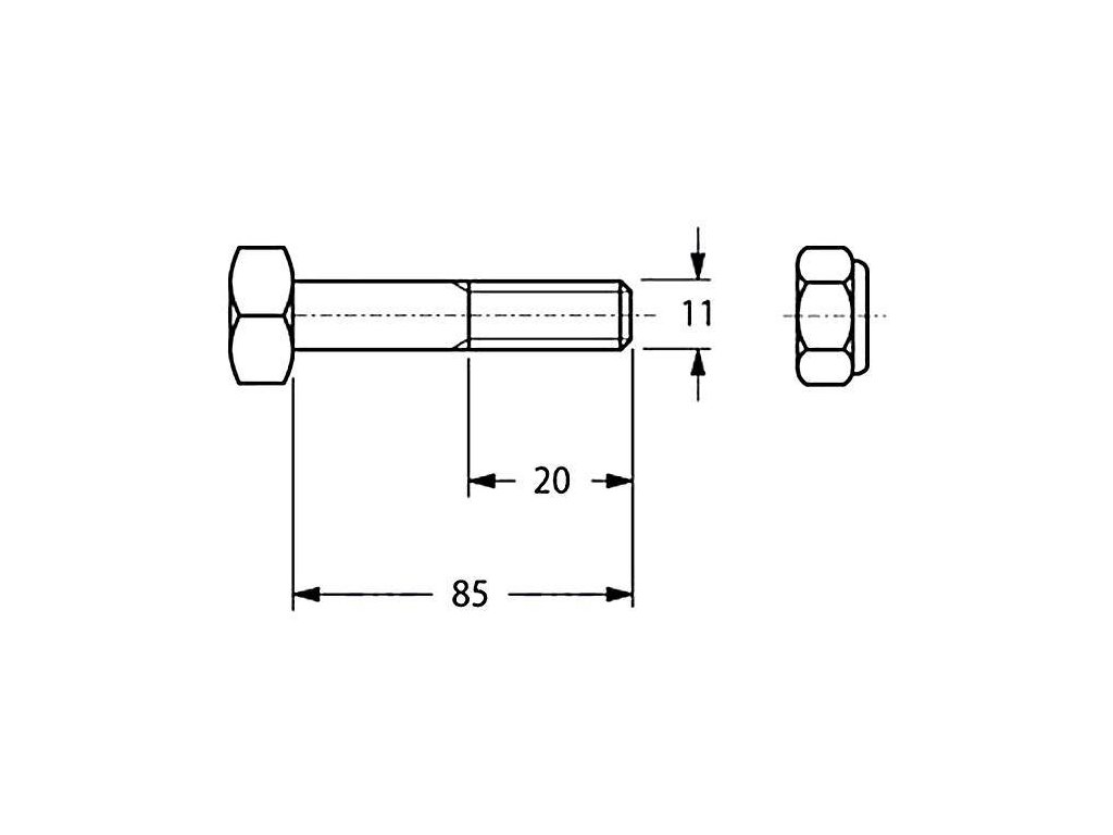Schraube mit Sicherungsmutter 11X85 H=20 L=85