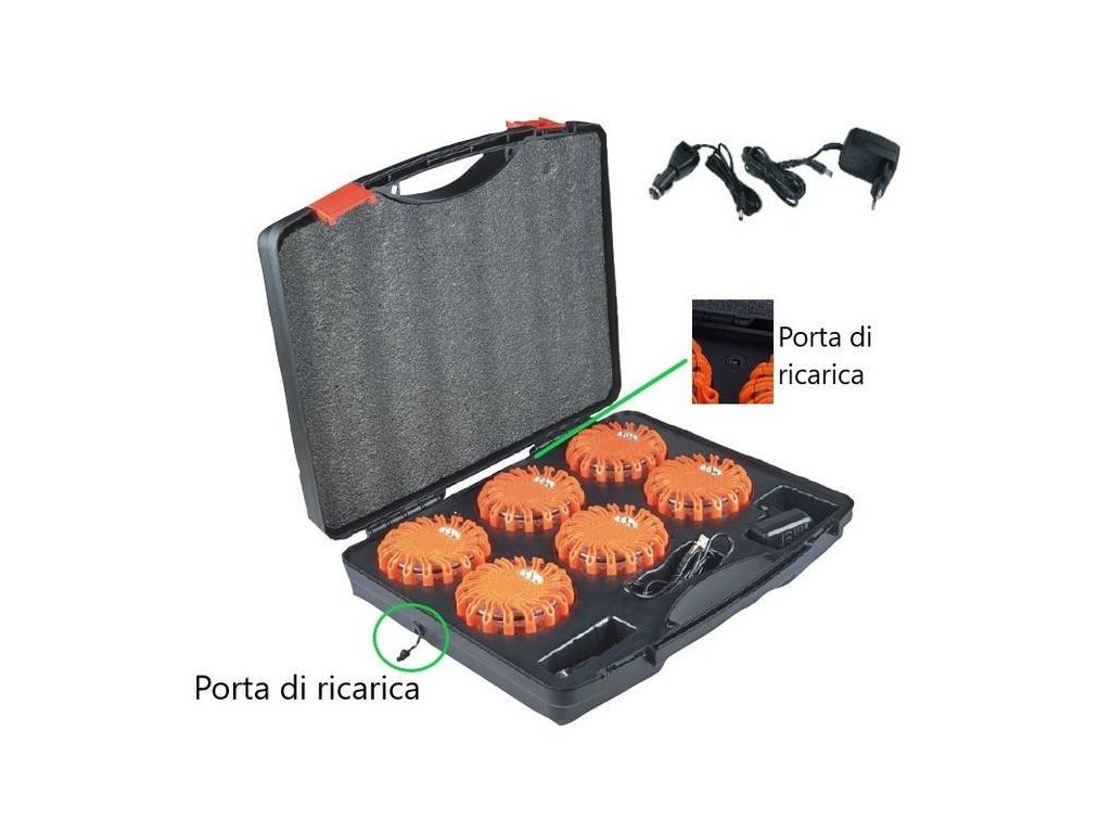 Set aus wiederaufladbaren LED-Notleuchten.