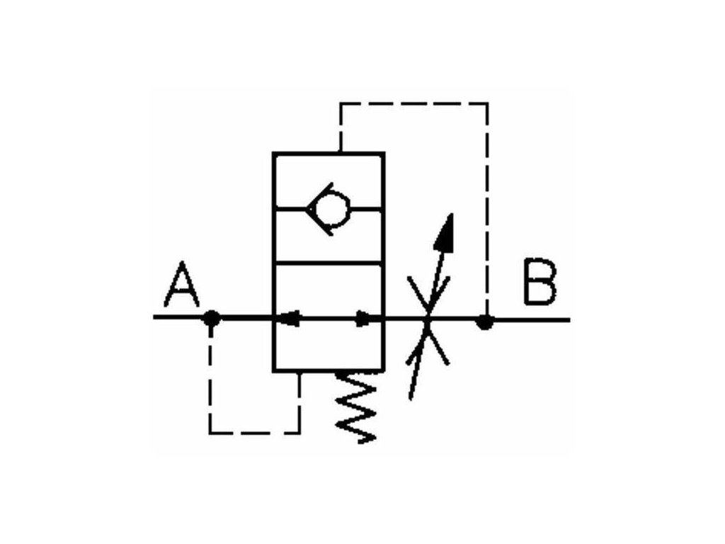 Das Ventil ist direkt an den Kupplungen der Hydraulikzylinder montiert, um einen unkontrollierten Lastabfall bei einem Ausfall der Versorgungsleitung (Bruch) zu verhindern. Unter normalen Bedingungen ist der Durchfluss in beide Richtungen normal. Der maximale Ausfluss kann stufenlos eingestellt werden. Wird dieser Grenzwert überschritten, wird das Ventil geschlossen.