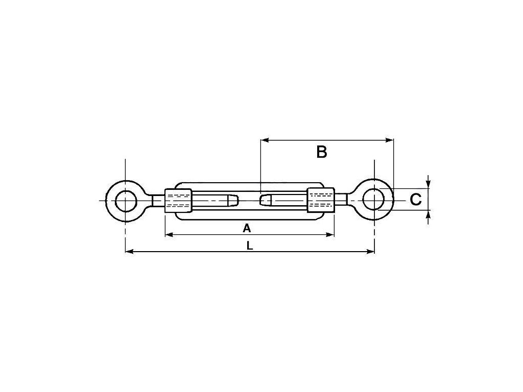Spannmutter, Auge - Auge. Einstellbarer Abstand 228-294 mm.