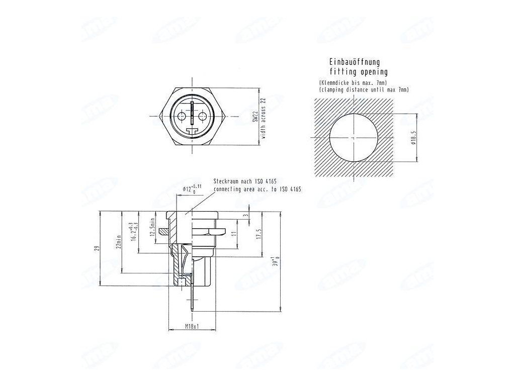 Steckdose 6 -24V ohne Abdeckung, 1-polig