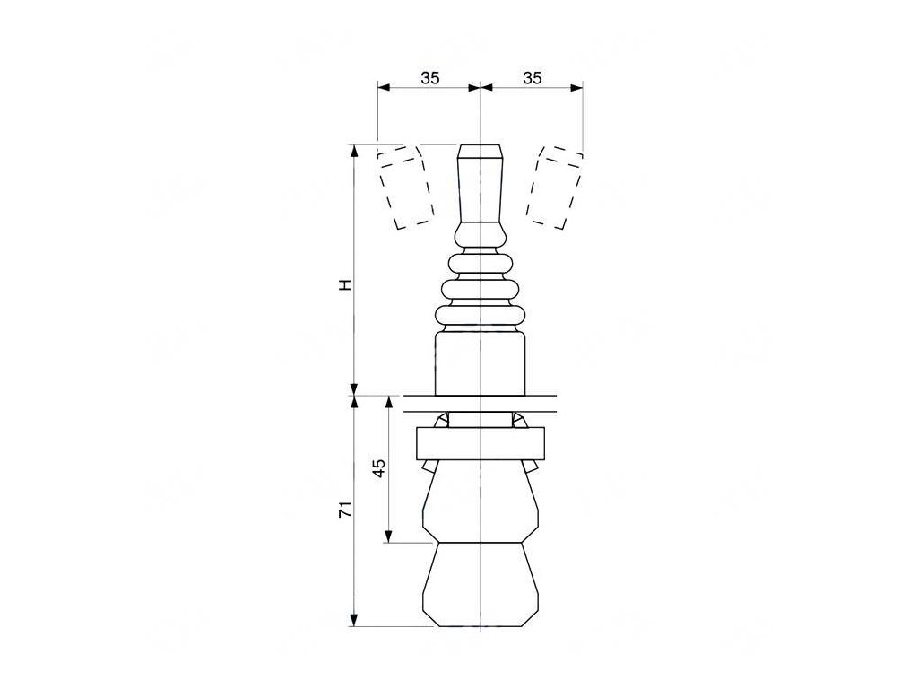 Steuerung, 1 Hebel 2 Positionen ohne Raste . Befestigungsloch 22 mm, Außendurchmesser des polierten Rings 30 mm, Größe der unteren Buchse 30x35 mm, Höhe des Hebels: Unterseite des polierten Rings / höchster Punkt des Hebels= 66 mm, Gesamthöhe: Unterseite der Buchse / höchster Punkt des Hebels= 110 mm