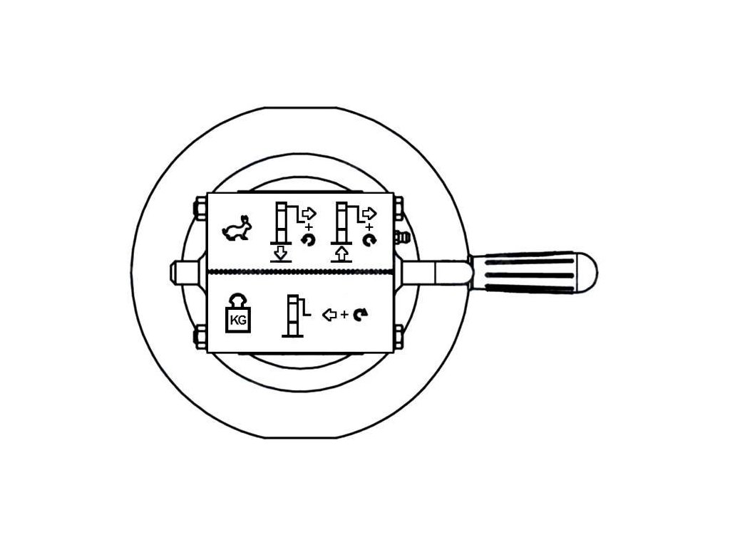 2. hohe Geschwindigkeit: Handgriff ausgefahren (ideal zum Heben, Senken ohne Last)