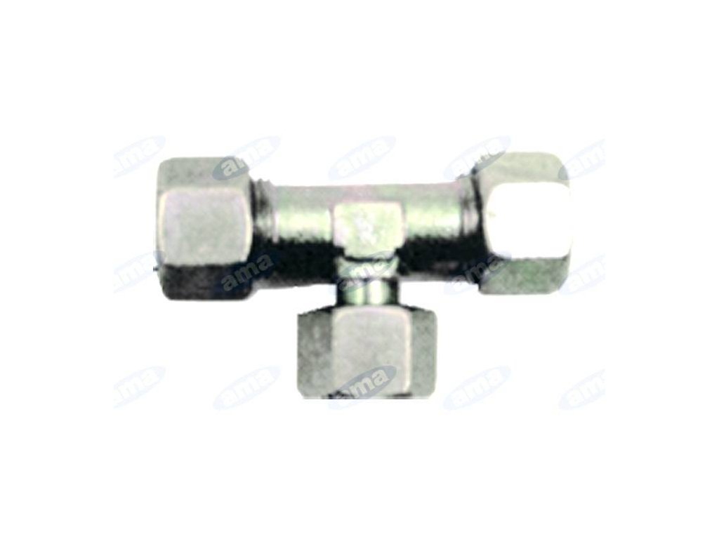 T-Verbinder für Hydraulikleitungen 2x Schneidring und Mutter für 10 mm Rohr, 1x Überwurfmutter 16x1,5 mit O-Ring (zu T)