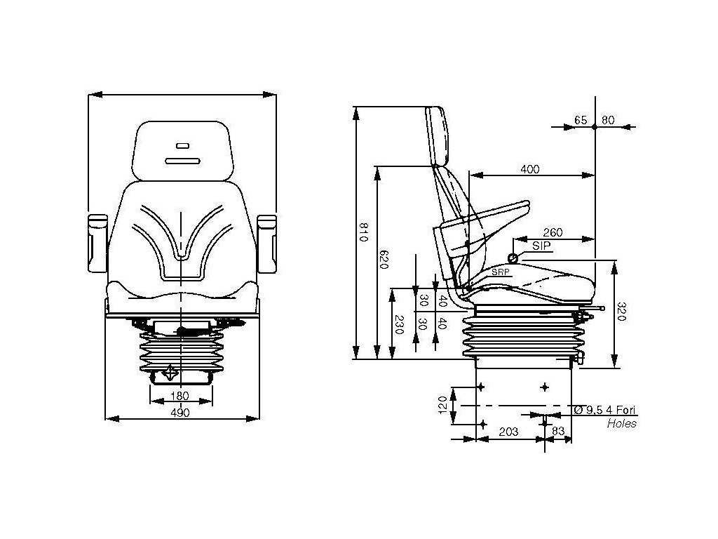 Mechanisch gepolsterter Sitz für Plätze mit geringer Stellfläche. Die Abmessungen des Gestells entnehmen Sie bitte der Abbildung. Der Sitz ist mechanisch gefedert mit einem hochwertigen Federsystem. Der Sitz ist mit einer Rückenlehne mit abnehmbarer Kopfstütze und Armlehnen ausgestattet.