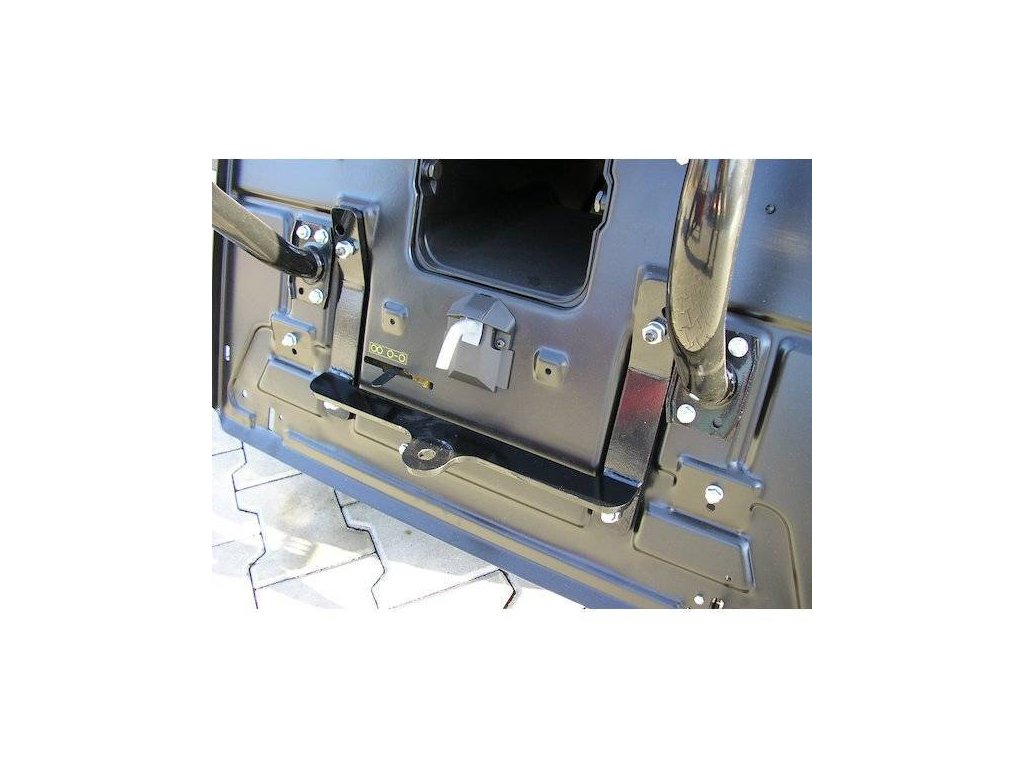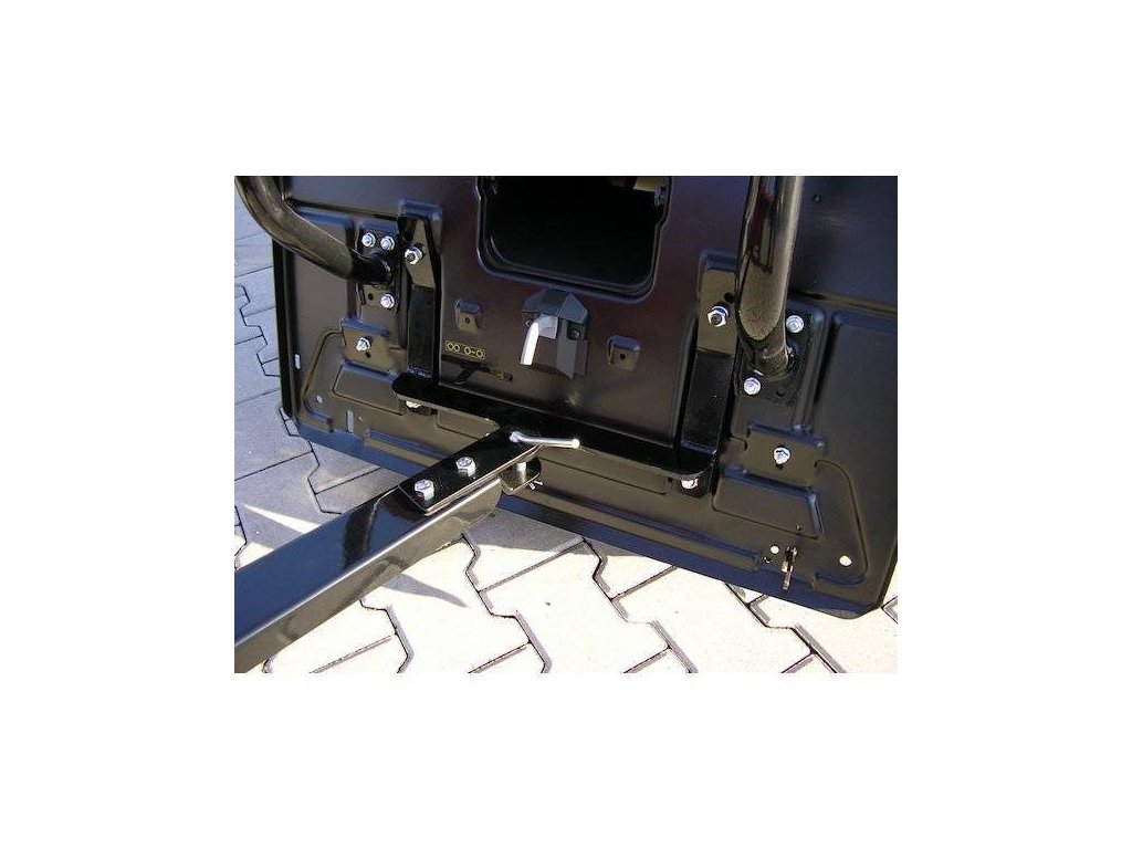 Hintere Anhängevorrichtung für Gartentraktoren, die nicht mit einer Standard-Wagenöse ausgestattet sind. Entwickelt für Gartentraktoren mit Castelgarden-Fahrgestell und VARES-Wagenaufsatz.