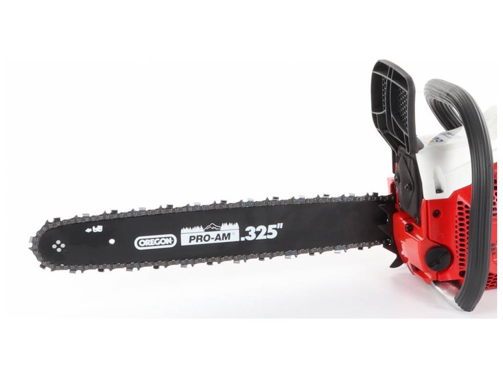 Das Kettenschwert und die Kette stammen von der amerikanischen Firma OREGON, die japanischen Walbro-Vergaser und die NGK-Zündkerzen.