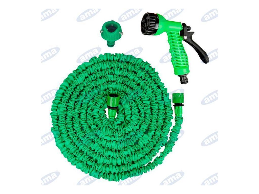 Der Verlängerungsschlauch ist mit einer Spritzpistole (7 Spritzvarianten) und einem Schlauchanschluss ausgestattet.