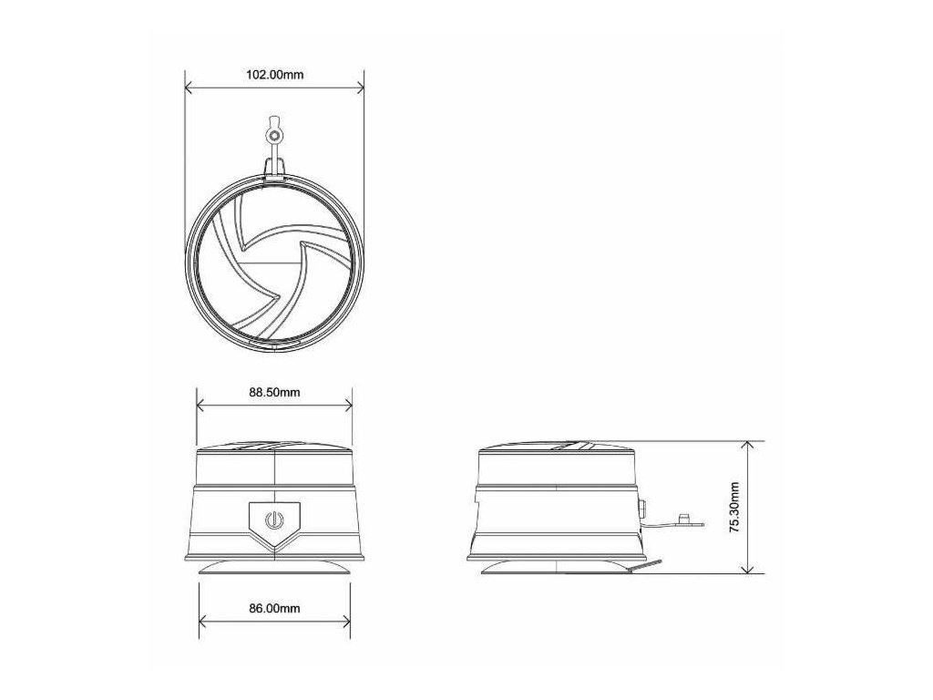 Magnetische Befestigung. Aufladezeit 4 Stunden, Betriebszeit 6,5 Stunden.
