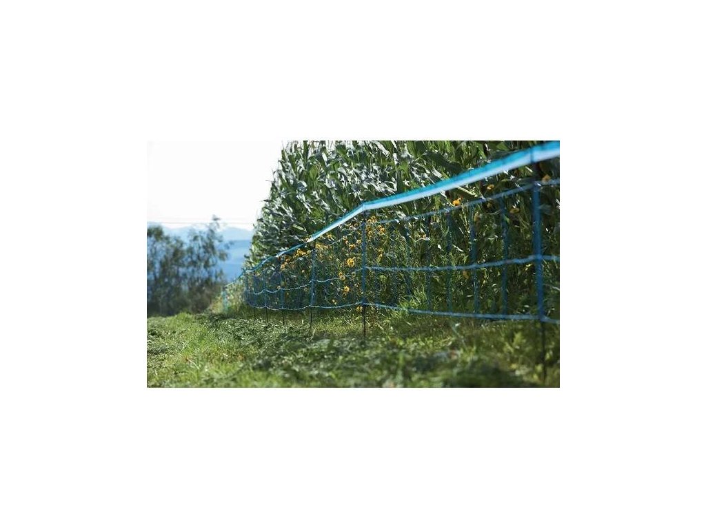 | 3 x TriCOND Reihen weiß/blau mit je 3 x 0,30mm TriCOND Drähten sorgen für optimale Leitfähigkeit (bis zu 10.000m Zaunlänge). 12 x blaue Fiberglaspfosten mit einem Pfostenabstand von ca. 4,5 m. 25mm blaues Signalband ist als separates Zubehör erhältlich (250m) Artikel Nr. 27240. 3 Jahre Garantie gegen UV-Schäden für alle Kunststoff-Polykabel. Schnellerer Auf- und Abbau als bei herkömmlichen Elektrozäunen. Gute Bodenfreiheit für besseres Mähen und deutlich weniger Ablenkungen, also mehr Leistung für den Zaun. Die Netze lassen sich leicht miteinander verbinden (der Stecker ist in das Netz integriert, separate Stecker sind nicht erforderlich). |