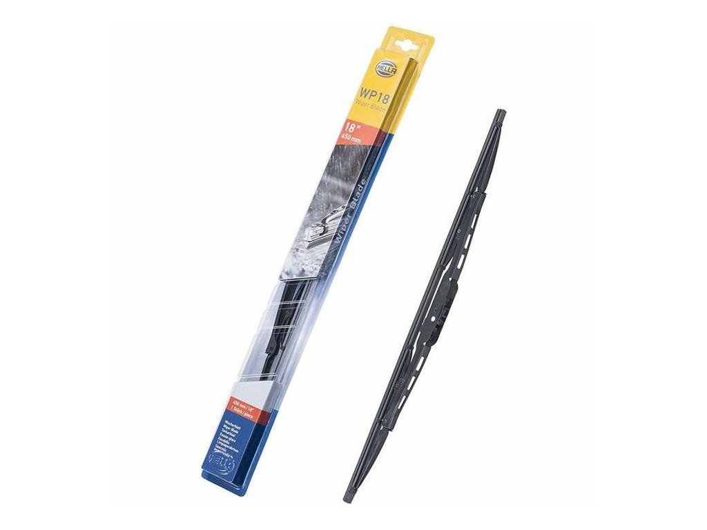 Wischerblatt 18° 450 mm, Stahlrahmen und Gummiabstreifer.