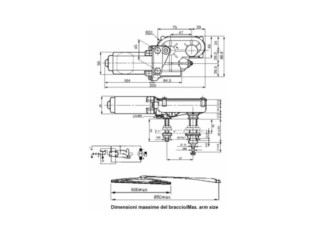 12V, Arbeitsbereich 90 Grad. Wischerarm Flansch A10xM8 DIN 72783, Arm: 12467