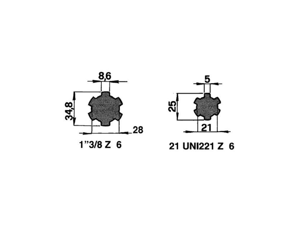 | Außenprofil: | 1"3/8 Z6 (6 Zähne , 35 mm) |